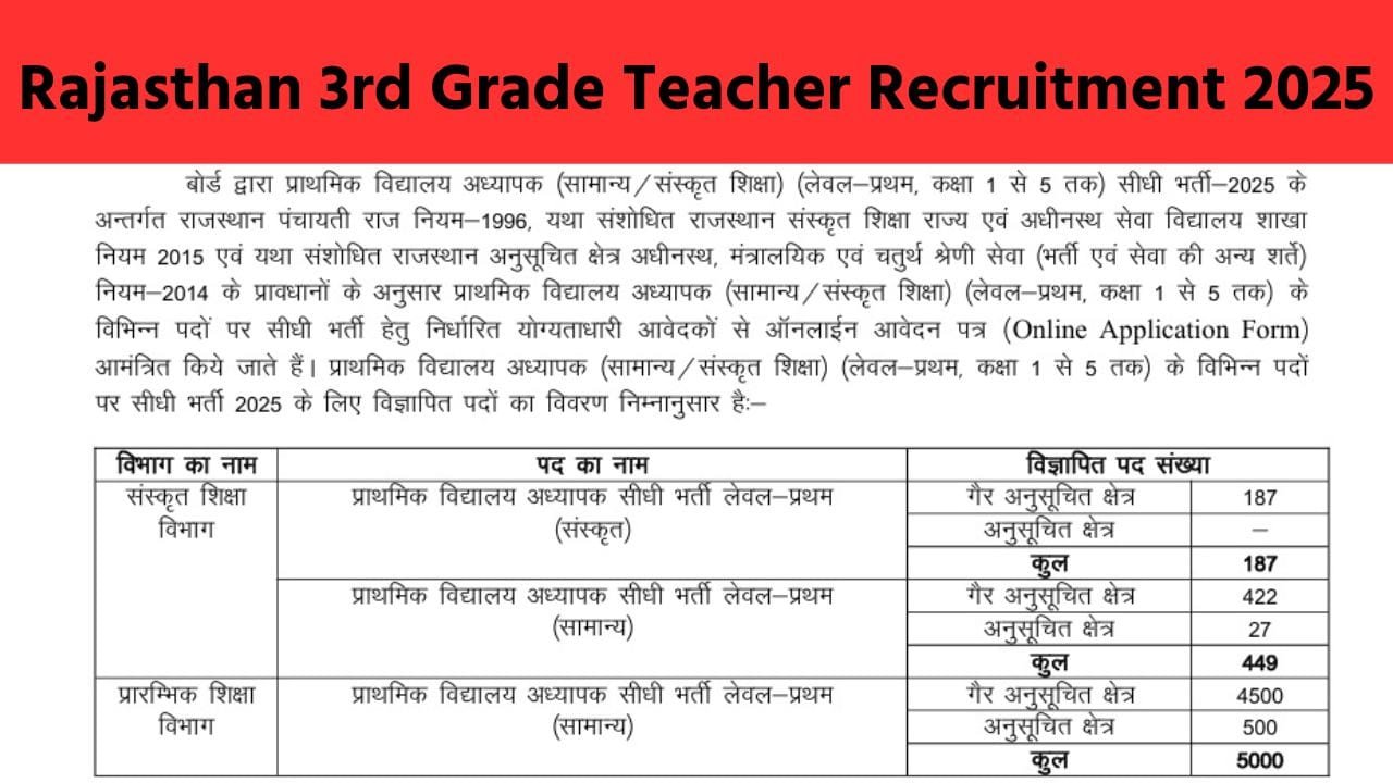 Rajasthan 3rd Grade Teacher Recruitment 2025: राजस्थान तृतीय श्रेणी अध्यापक भर्ती का 7759 पदों के लिए नोटिफिकेशन जारी
